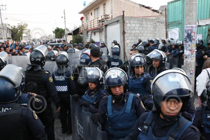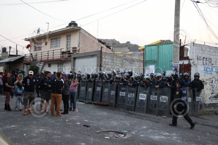 MÉXICO, D.F., 04FEBRERO2016.- La disputa por un predio derivó en un enfrentamiento que dejó al menos una decena de personas heridas y dos vehículos incendiados. Los hechos ocurrieron alrededor de las 15:07 horas, en la esquina de las calles Puerto Marqués y Benito Juárez, en la colonia Polvorilla, en la delegación Iztapalapa, De acuerdo con los primeros reportes, presuntos integrantes del Frente Popular Francisco Villa se enfrentaron con habitantes del predio con golpes y piedras. La policía capitalina informó que al parecer es por una disputa entre dos grupos rivales de este Frente por el predio “Centauro del Norte” localizado en Benito Juárez y 1ra cerrada de Benito Juárez. Policías antimotines de la SSP-DF, reguardaron el predio para que no se suscitara otra gresca. FOTO: SAÚL LÓPEZ /CUARTOSCURO.COM