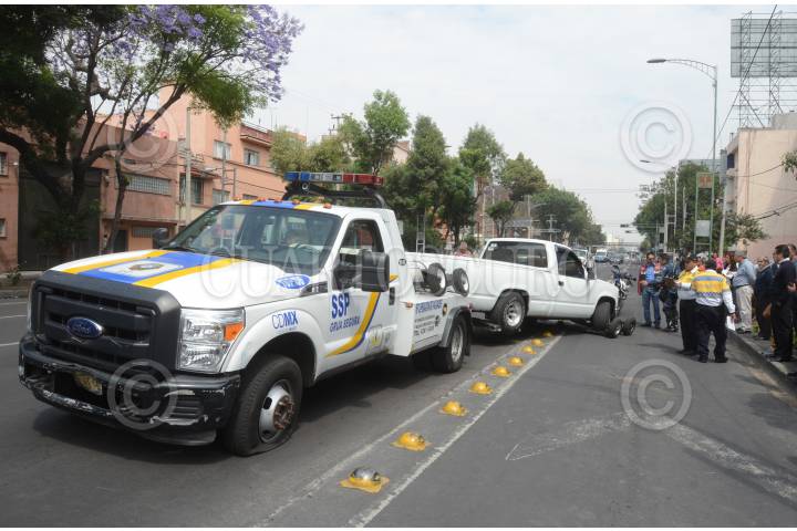 CIUDAD DE MÉXICO, 01MARZO2016.- Una grúa de la Secretaría de Seguridad Pública de la Ciudad de México fue agredida por vecinos de la colonia del Valle, la unidad intentaba llevarse una camioneta que estaba estacionada sobre la banqueta cuando vecinos poncharon sus llantas, el incidente fue sobre avenida Cuauhtémoc y Torres Adalí. FOTO: ARMANDO MONROY /CUARTOSCURO.COM