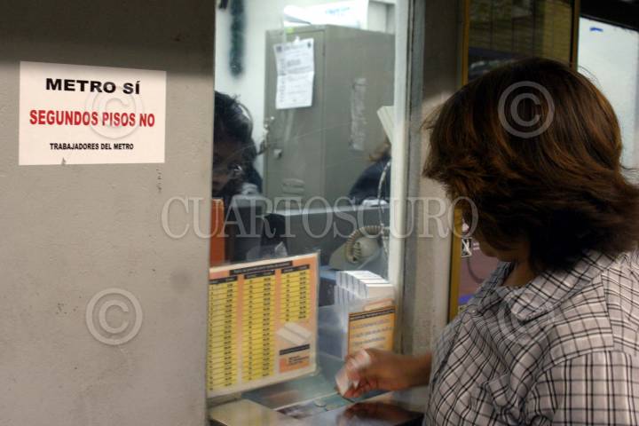 México, D.F., 21ENERO2005.- Una calcomanía en una taquilla anuncia Metro Sí, Segundos Pisos No, en opinión de los trabajadores del metro el gobierno del DF a dejado de lado el mantenimiento de este por hacer magnas obras. FOTO: Moisés Pablo/CUARTOSCURO.COM