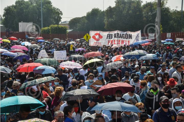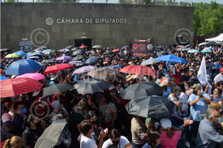 CIUDAD DE MÉXICO, 10OCTUBRE2023.- Cientos de integrantes del Sindicato de Trabajadores de la Universidad Nacional Autónoma de México (STUNAM) realizaron un mitin al exterior de la Cámara de Diputados para exigir un aumento del 20 por ciento en su salario en el contexto de la próxima renovación administrativa de la rectoría. FOTO: MARIO JASSO/CUARTOSCURO.COM