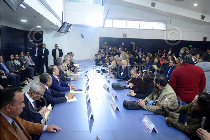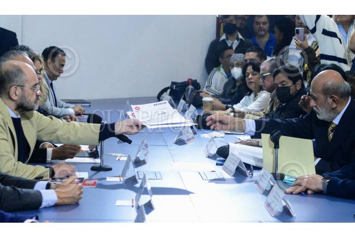 CIUDAD DE MÉXICO, 10OCTUBRE2013.- La Universidad Nacional Autónoma de México (UNAM) y el Sindicato de Trabajadores de la UNAM (STUNAM) instalaron la mesa de negociación para la revisión del Contrato Colectivo de Trabajo y las prestaciones con vigencia en el bienio 2024-2026, así como la revisión salarial correspondiente al periodo del 1 de noviembre de 2023 al 31 de octubre de 2024. El secretario administrativo de la UNAM, Luis Agustín Álvarez Icaza Longoria, acompañado por Hugo Concha Cantú, abogado general, presentó el proyecto de Reglamento para la Comisión Revisora para consideración del organismo sindical FOTO: UNAM/CUARTOSCURO.COM