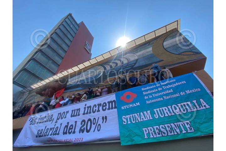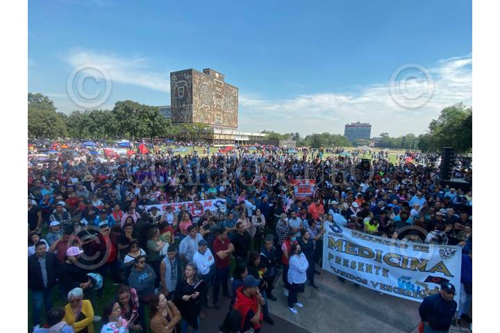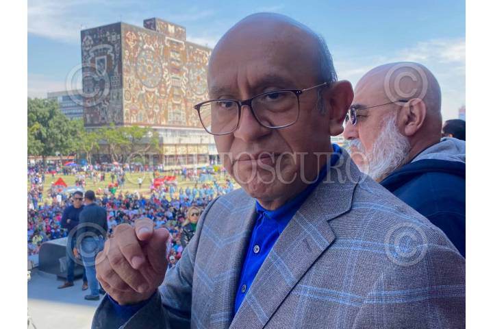 CIUDAD DE MÉXICO, 20OCTUBRE2023.- Se llevo a cabo un mitin en la Rectoría de la UNAM, encabezado por Carlos Hugo Morales Morales líder del Sindicato de Trabajadores de la Universidad Nacional Autónoma de México STUNAM, dónde se habló de un emplazamiento a huelga por el 20? incremento salarial FOTO: ADRIANA ALVAREZ/CUARTOSCURO.COM