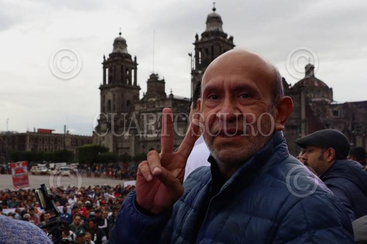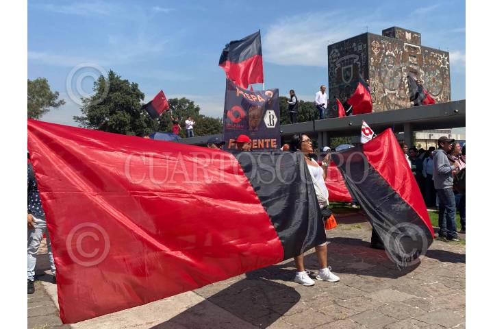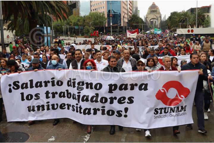 CIUDAD DE MÉXICO, 25OCTUBRE2023.- Cientos de manifestantes pertenecientes al Sindicato de Trabajadores de la Universidad Nacional Autónoma de México STUNAM encabezados por su líder sindical Carlos Hugo Morales Morales, se dieron cita en el monumento a la Revolución para marchar rumbo al Zócalo Capitalino, donde se llevó a cabo un mitin en el que se mencionó un emplazamiento a huelga por el 20? incremento salarial FOTO:ADRIANA ALVAREZ/CUARTOSCURO.COM