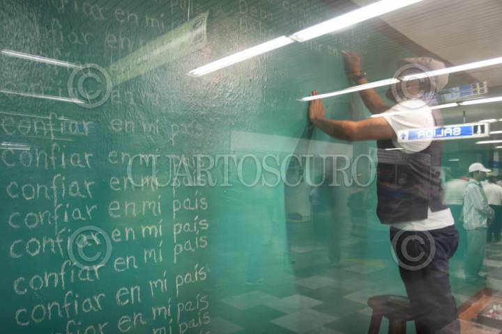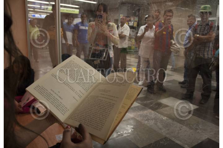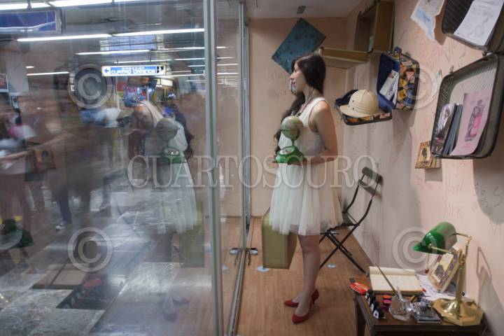 MÉXICO, D.F., 25FEBRERO2013.-Varios artistas plásticos realizaron sus performances, en el pasaje de la estación Pino Suárez del Metro. Este programa solo se llevó a cabo el día de hoy y se quedaran las instalaciones de manera permanente como parte del programa universitario "SuSede en el Centro", inagurado hoy de manera conjunta por la UNAM el gobierno del D.F. y fundación Carlos Slim. FOTO: JUAN PABLO ZAMORA /CUARTOSCURO.COM