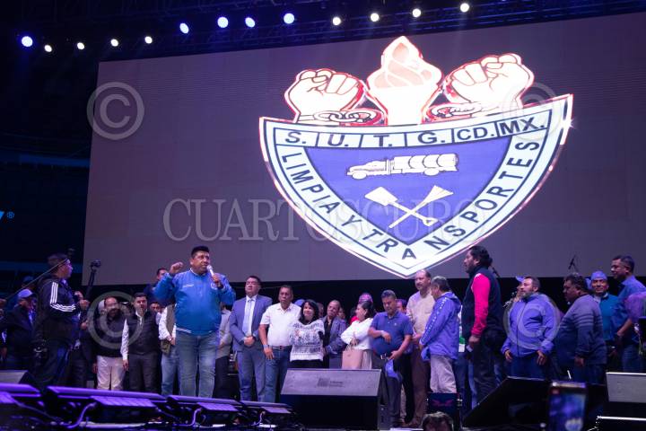 el comite de la sección uno de Limpia y Transporte durante los festejos por el "Día del trabajador de limpia" en la Arena Ciudad de México.