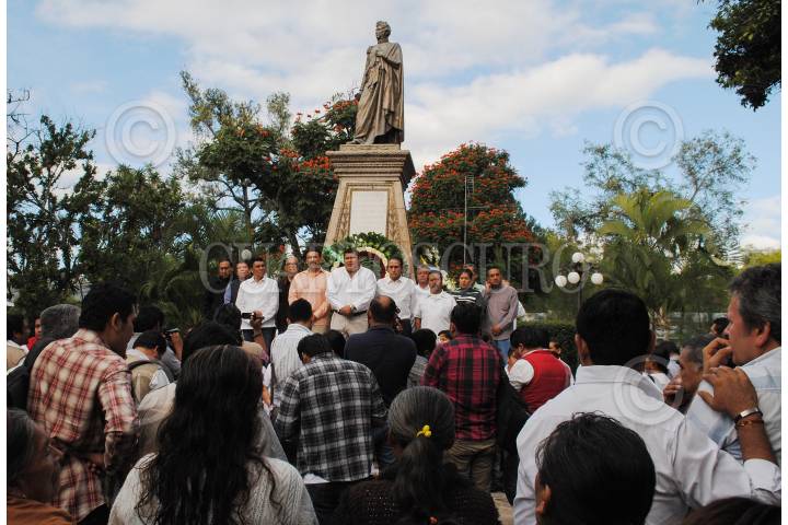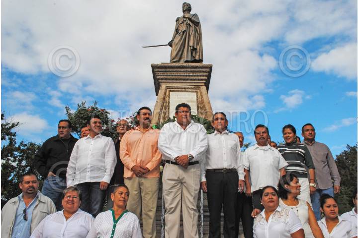 TIXTLA, GUERRERO, 04NOVIEMBRE2015.- Esta mañana el candidato priísta Saúl Nava Astudillo, arrancó su campaña colocando una ofrenda en los monumentos del general Vicente Ramón Guerrero Saldaña y el escritor Ignacio Manuel Altamirano. Saúl Nava Astudillo fue acompañado por el ex presidente de Chilpancingo Mario Moreno Arcos, del diputado local Cuauhtémoc Salgado Romero, del dirigente del Comité Estatal del tricolor, José Parcero López, entre otros personajes del PRI. Inició su campaña bajo el lema "Por la Grandeza de Tixtla Vamos Juntos. FOTO: JOSÉ I. HERNÁNDEZ /CUARTOSCURO.COM