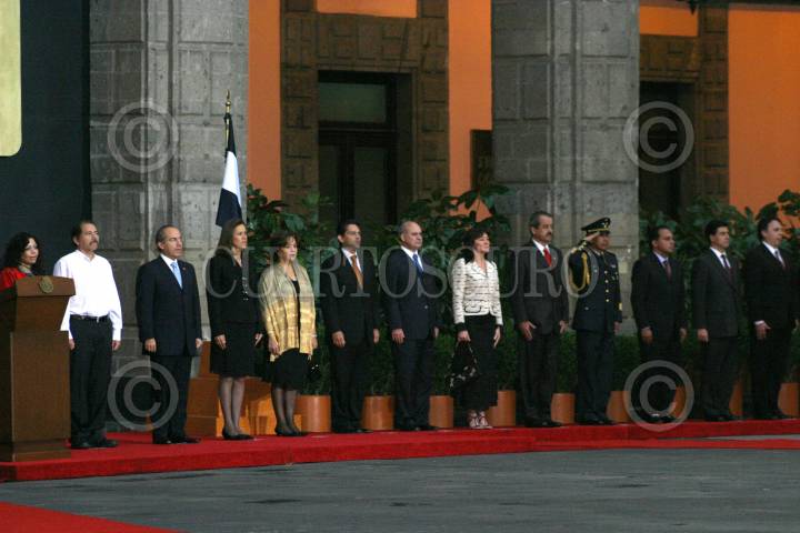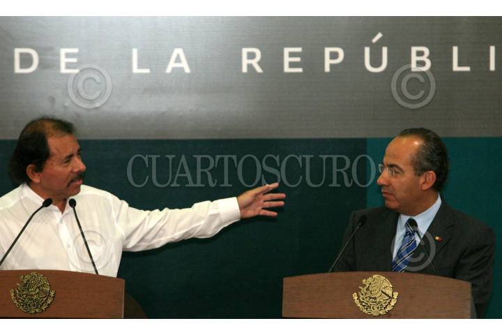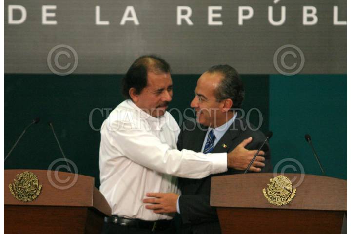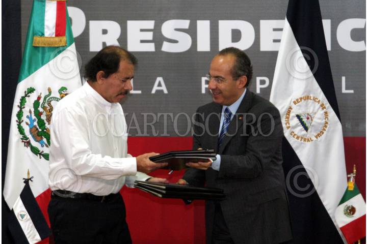 MÉXICO, D.F., 28JUNIO2007.- Felipe Calderon Hinojosa, Presidente de la República y Daniel Ortega Saavedra, Presidente de Nicaragua, encabezaron una firma de convenios entre las dos nacionaes en materia de salud y migración en el salón Adolfo López Mateos en los Pinos. FOTO: MOISÉS PABLO/CUARTOSCURO.COM