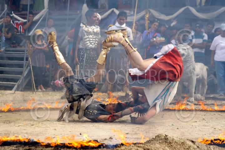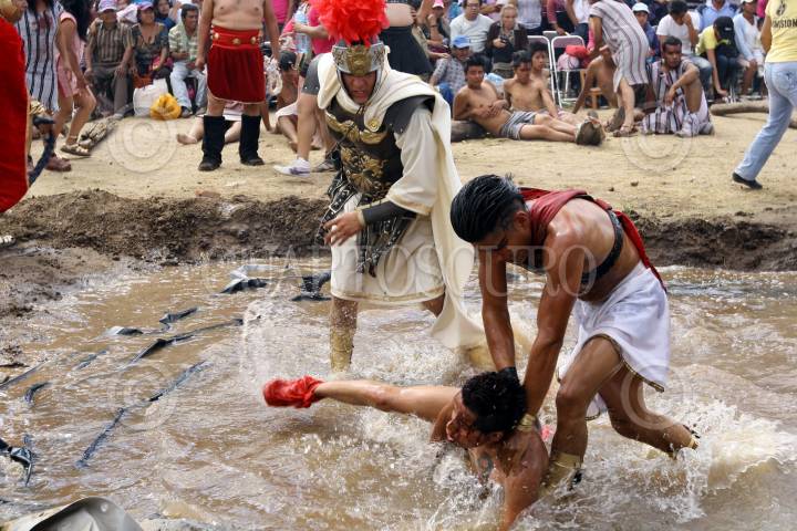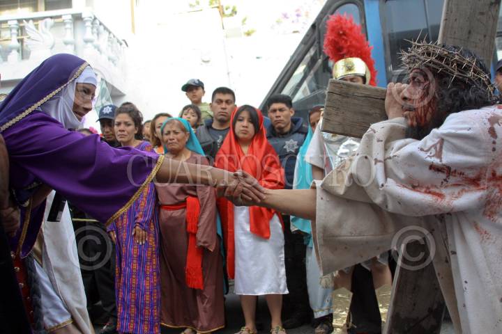 ROMERO VARGAS, PUEBLA, 07ABRIL2012.- Con mas de cuarenta años de tradición, el día de ayer se realizó la procesión de la representación de la vida y pasión de cristo en la junta auxiliar Romero Vargas en Puebla. FOTO: HILDA RÍOS /CUARTOSCURO.COM