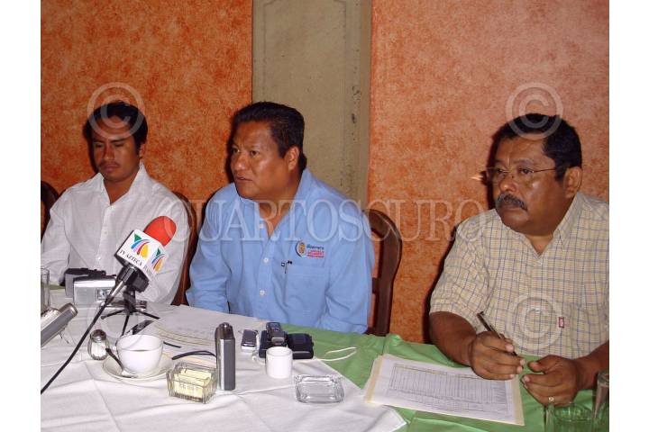 CHILPANCINGO, GUERRERO, 11MARZO2008.- Sabas de la Rosa Camacho, titular de la Secretaria del Medio Ambiente y Recursos Naturales del gobierno del estado (SEMAREN) y Alejandro Albarran Silva, subgerente operativo de la Comision Nacional Forestal (CONAFOR) , durante la conferencia de prensa que ofrecieron a los representantes de los medios de comunicacion, donde abordaron la problemática que enfrenta la entidad por los incendios forestales. FOTO: OSCAR ALVARADO/CUARTOSCURO.COM