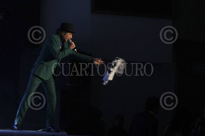 VERACRUZ, VERACRUZ., 31OCTUBRE2013.- El cantautor español, Joaquín Sabina, se presentó la noche de este jueves en el puerto de Veracruz donde abarrotó el Teatro de la Reforma. Los asistentes disfrutaron de los grandes éxitos luego de una pausa en su gira debido a un malestar físico que provocó la cancelación de su concierto en Tijuana. FOTO: FÉLIX MÁRQUEZ / CUARTOSCURO.COM