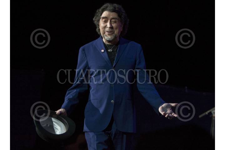 OAXACA, OAXACA, 03NOVIEMBRE2013.- Joaquín Sabina cantautor español visitó este fin de semana la ciudad de Oaxaca donde presentó su espectáculo "Canciones para una crisis" en el teatro Álvaro Carrillo, el cual lució a su máxima capacidad. Durante el recital el cual tuvo una duración de más de dos horas, el cantante recordó a Chavela Vargas a quien confesó aún extraña. FOTO: ARTURO PÉREZ ALFONSO /CUARTOSCURO.COM