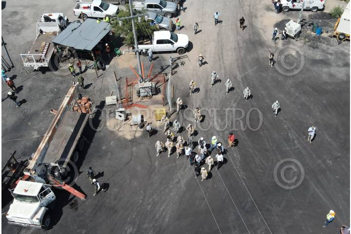 Andrés Manuel López Obrador, Presidente de México, supervisó los trabajos de rescate de los 10 mineros que están atrapados en el pozo de carbón El Pinabete, en el complejo minero Las Conchas, en la comunidad de Agujita en Coahuila.