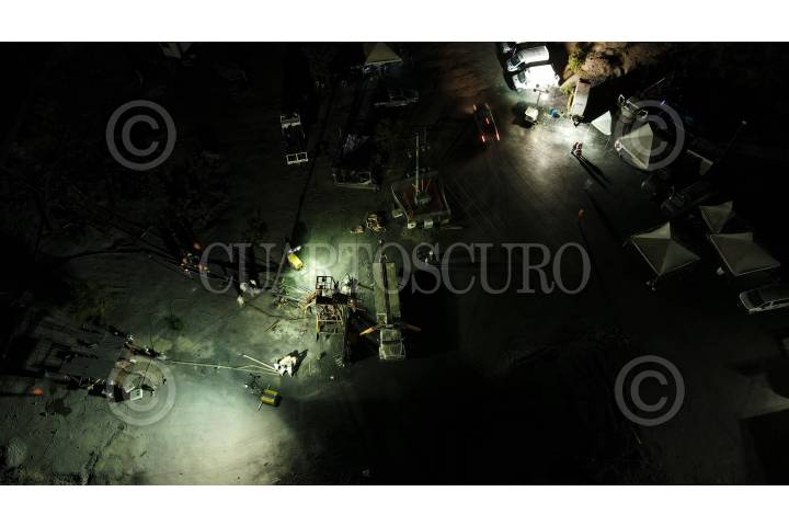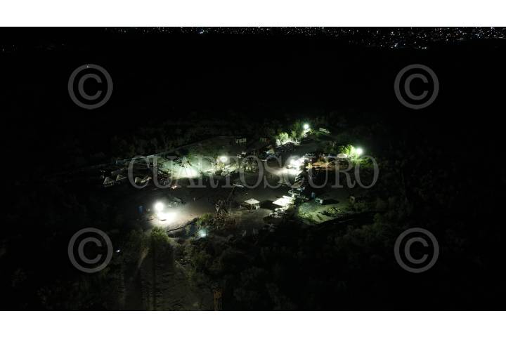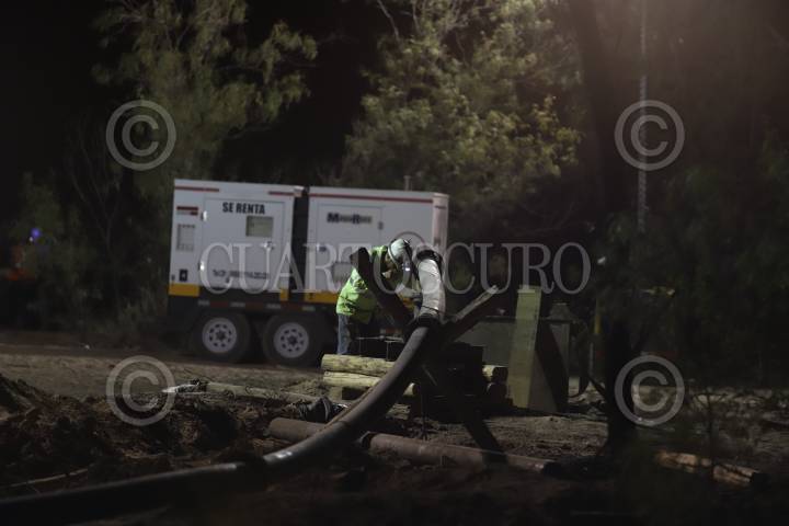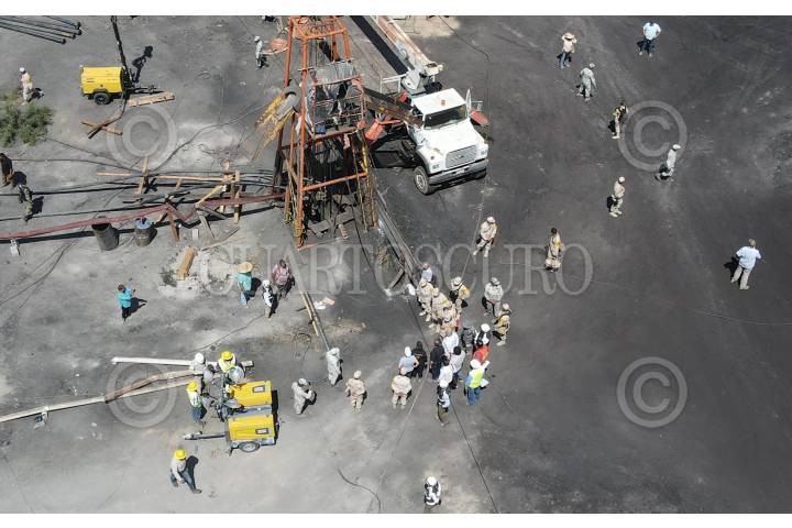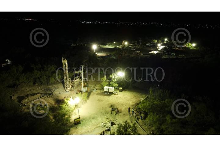 Trabajos nocturnos en el pozo minero El Pinabete, en el complejo minero Las Conchas, para rescatar a los diez mineros que están atrapados desde del miércoles luego de un colapso dentro de la oquedad seguida de una inundación.