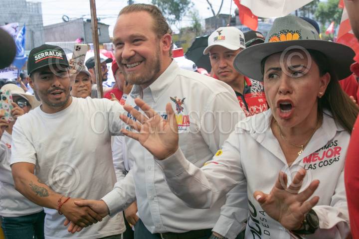 CIUDAD DE MÉXICO, 27MAYO2024.- Santiago Taboada, candidato a la Jefatura de Gobierno por la alianza Fuerza y Corazón por México, y Rocío Barrera Badillo, candidata la alcaldía Venustiano Carranza por la alianza Fuerza y Corazón por México, cerraron campaña en esta alcaldía a unos días del fin de las campañas electorales. El panista señaló que habrá de acabar con el cobro de piso en la colonia Moctezuma, en donde se llevo a cabo el mitin. FOTO: MOISÉS PABLO/CUARTOSCURO.COM