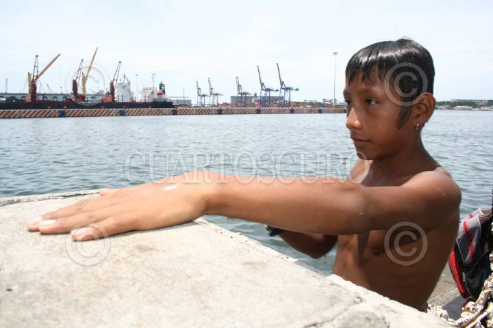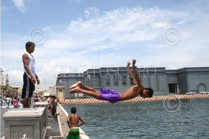 BOCA DEL RÍO, VERACRUZ 06JULIO2008.- Jovenes se lanzan al mar a sacar monedas que turistas les lanzan a las aguas Vercruzanas FOTO: SÁSHENKA GUTIÉRREZ/CUARTOSCURO.COM