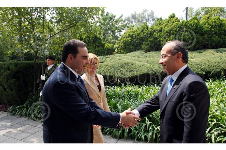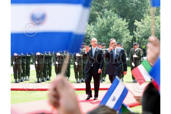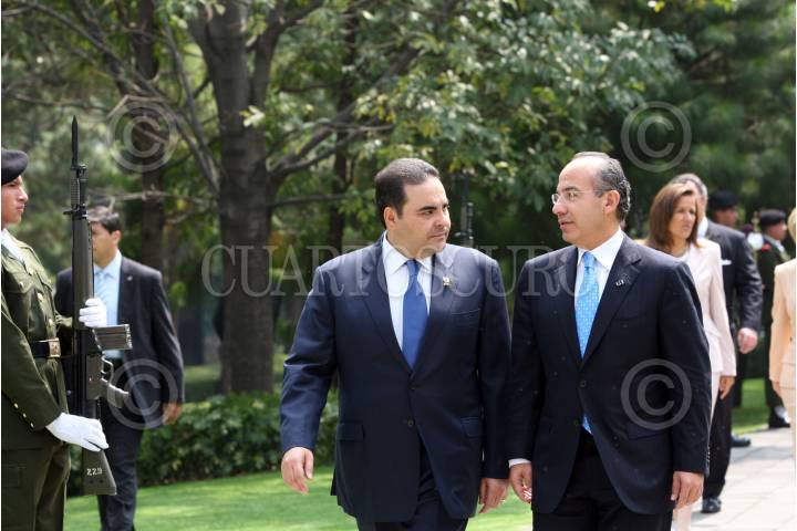 MÉXICO D.F. 15OCTUBRE2008.- Felipe Calderón Hinojosa, Presidente de México recibió en visita de estado a su homologo salvadoreño, Elias Antonio Saca González, en el monumento a Francisco I. Madero de la Residencia Oficial de Los Pinos. FOTO: ALFREDO GUERRERO/CUARTOSCURO.COM