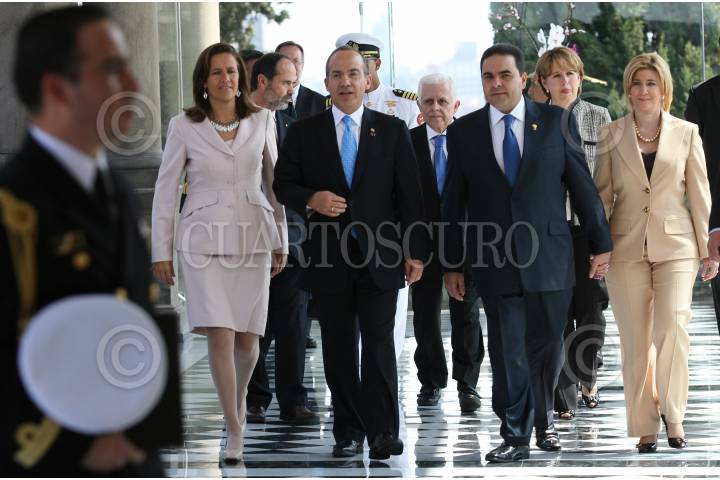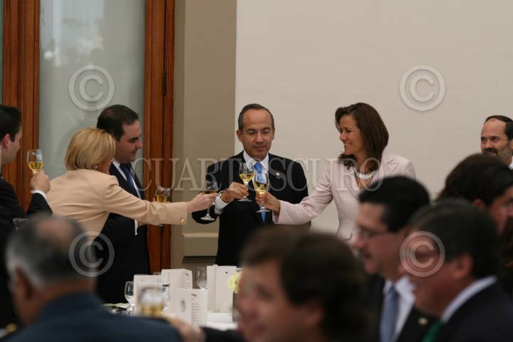MÉXICO D.F., 15OCTUBRE2008.- El presidente, Felipe Calderón Hinojosa, en el salón Alcazar del Castillo de Chapultepec ofrecio un almuerzo en honor a Elias Antonio Saca González, Presidente de la República del Salvador, ambos mandatarios fueron acompañados por sus repectivas esposas. FOTO: GUILLERMO PEREA/CUARTOSCURO.COM