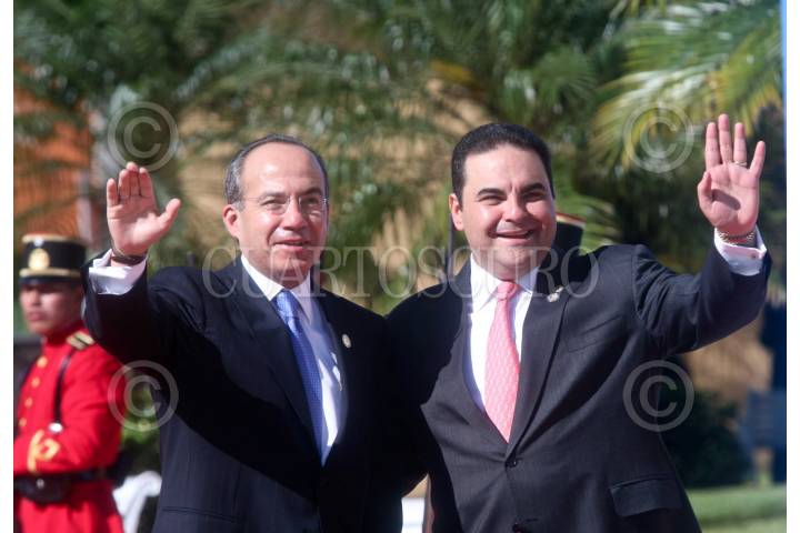 SAN SALVADOR, EL SALVADOR, 30OCTUBRE2008.- El presidente de México, Felipe Calderon Hinojosa, durante su arribo al "Centro Internacional de Ferias y Convenciones, quien lo recibió el presidente de El Salvador, Elias Antonio Saca, en el marco de la "XVIII Cumbre Iberoamericana. FOTO: ALFREDO GUERRERO/CUARTOSCURO.COM