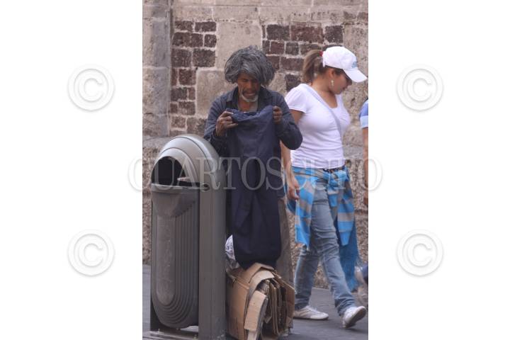 MÉXICO, D.F., 17FEBRERO2009.- Un índigente saca del bote de básura ropa que aún se encontraba en buen estado, el hombre estuvo por varios minutos en el lugar revisando cada detalle de la ropa que encontraba. FOTO: SÁSHENKA GUTIÉRREZ/CUARTOSCURO.COM
