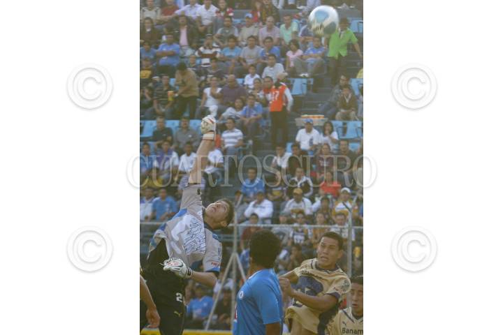 MÉXICO D.F., 23ENERO2010.- El portero de los Pumas de la UNAM Alejandro Palacios saca el balón de la portería durante el encuentro en contra de la maquina celeste del Cruz Azul; partido que empataron a cero goles en el estadio Azul de la jornada 2 del torneo Bicentenario 2010. FOTO: RODOLFO ANGULO/CUARTOSCURO.COM