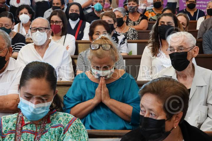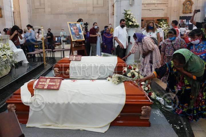 Se llevó a cabo la eucaristía en el Templo del Sagrado Corazón de Jesús de los cuerpos presentes de Joaquín César Mora Salazar y Javier Campos Morales, sacerdotes jesuitas asesinados dentro la Iglesia de Cerocahui, en el municipio de Urique
