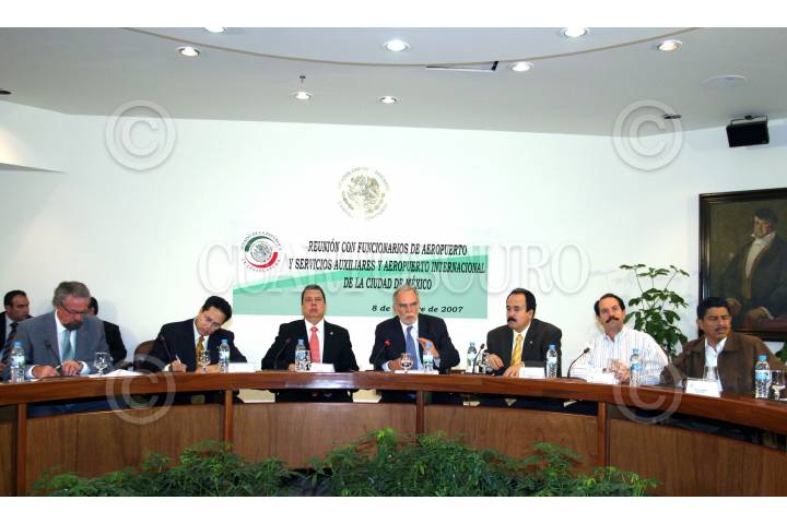 MEXICO,D.F.08OCTUBRE2007.-Se realizó una reunión de funcionarios del Aeropuerto y Servicios Auxiliares y del Aeropuerto Internacional de la Ciudad de México con Senadores. A esta reunión asistieron Héctor Velázquez Corona, director del Aeropuerto de la Ciudad de México, José Julian Sacramento, secretario de la comisión de Comunicaciones y Transportes, Angel Heladio Aguirre, presidente de comunicaciones y Transportes, Ernesto Velasco de Leòn director general de Aeropuertos y Servicios Auxiliares, y los senadores Antonio Mejía Haro(PRD), Juan Bueno (PAN) y Salomón Jara( PRD). FOTO:ROCIO ORTIZ/CUARTOSCURO.COM