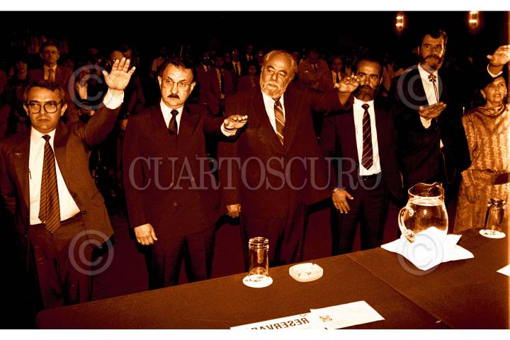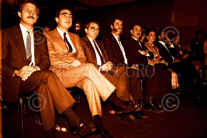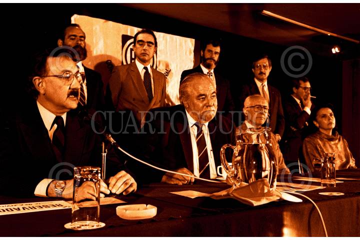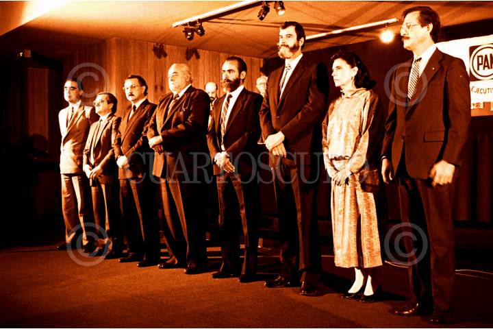MÉXICO, D.F. 19NOVIEMBRE2006.- Los panistas Carlos Castillo Peraza, Rogelio Sada Zambrano, Manuel J. Clouthier, Diego Fernández de Cevallos y Vicente Fox Quesada tomaron protesta como miembros del Gabinete Alternativo en el hotel Sevilla Palace el 23 de febrero de 1989. FOTO: PEDRO VALTIERRA/CUARTOSCURO.COM