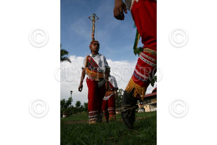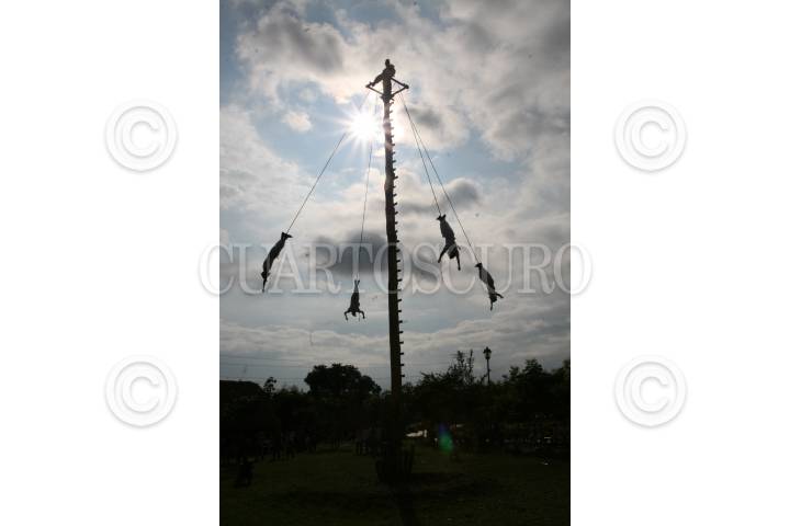 PAPANTLA, VERACRUZ, 22SEPTIEMBRE2008.- Integrantes del pueblo Totonaca, realizaron el corte y arrastre del Palo Volador, ceremonia sagrada de este pueblo, la cual consiste en buscar el árbol que derribaran para que posteriormente después de un ritual y de ser colocado el tronco concluya con el vuelo de los niños que integran en este caso la escuela que se encuentra en el Parque Temático Takilhsukut, lugar donde fue colocado este palo volador. FOTO: GUILLERMO PEREA/CUARTOSCURO.COM