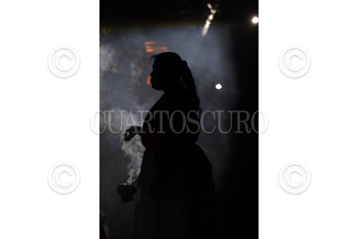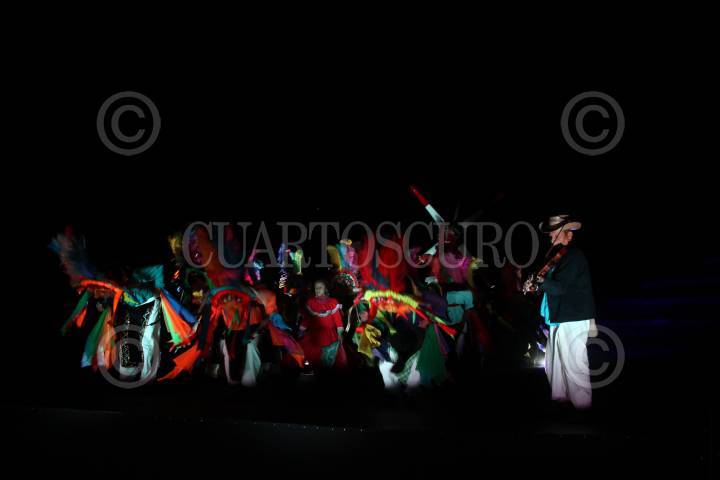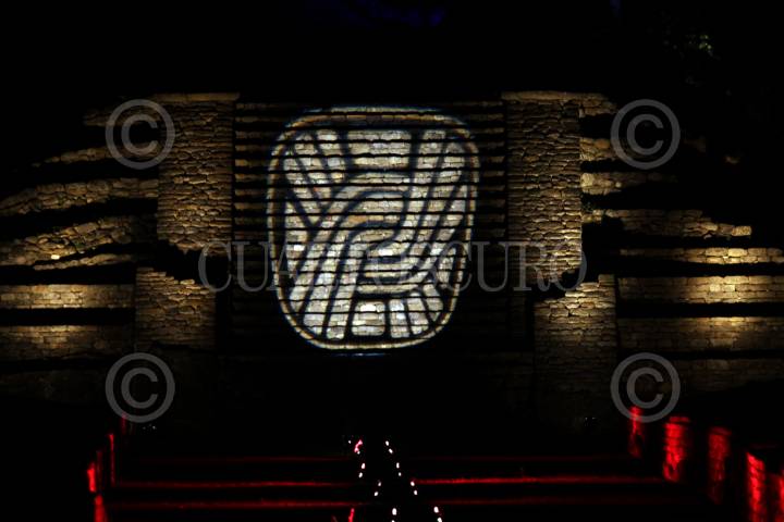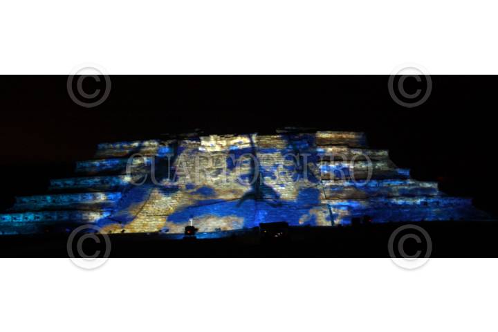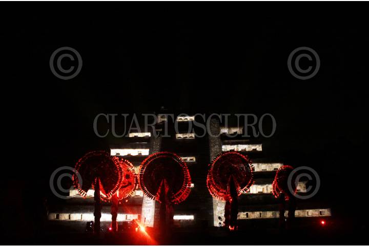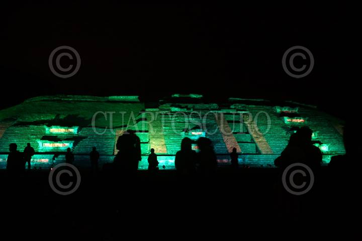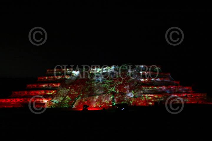 PAPANTLA, VERACRUZ, 20MARZO2010.- El espectáculo de luz y sonido Tajín Vive, que se conforma con un recorrido nocturno por la ciudad sagrada de la cultura Totonaca permite al espectador una experiencia profunda e inolvidable; permite el contacto directo las deidades y los habitantes de una cosmogonía única de la zona arqueológica de El Tajín. Con este espectáculo se presenta cada noche durante las actividades de Cumbre Tajín 2010. FOTO: SÁSHENKA GUTIÉRREZ/CUARTOSCURO.COM