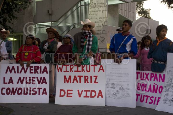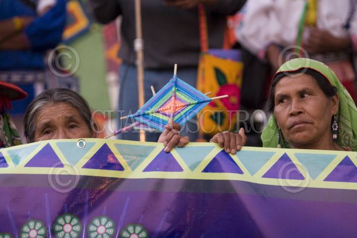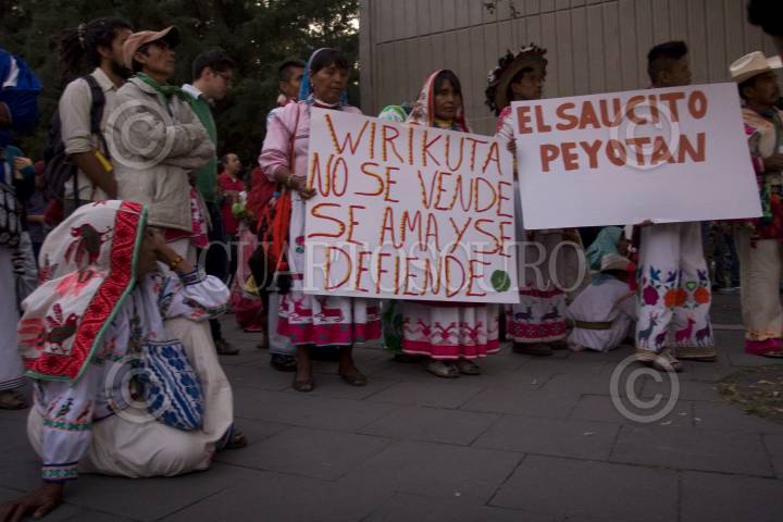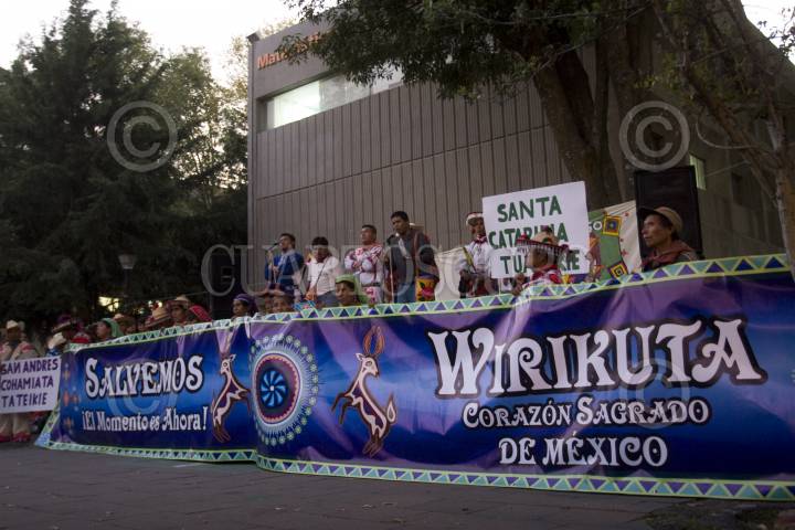 MÉXICO, D.F., 26OCTUBRE2011.- Desde que el gobierno federal cedió Wirikuta (Real de catorce), área sagrada para el pueblo Wirrárika (huichol) a la empresa canadiense First Majestic, estos han encabezado un movimiento llamado "Salvemos Wirikuta" en el que exigen al gobierno Federal el respeto este territorio. Miembros de distintos poblados Huicholes provenientes de los estados de Zacatecas, Nayarit, Jalisco y San Luis Potosí, marcharon en las instalaciones de Ciudad Universitaria donde concluyeron con un mitin en la explanada de la Facultad de Ciencias. FOTO: GUILLERMO PEREA/CUARTOSCURO.COM
