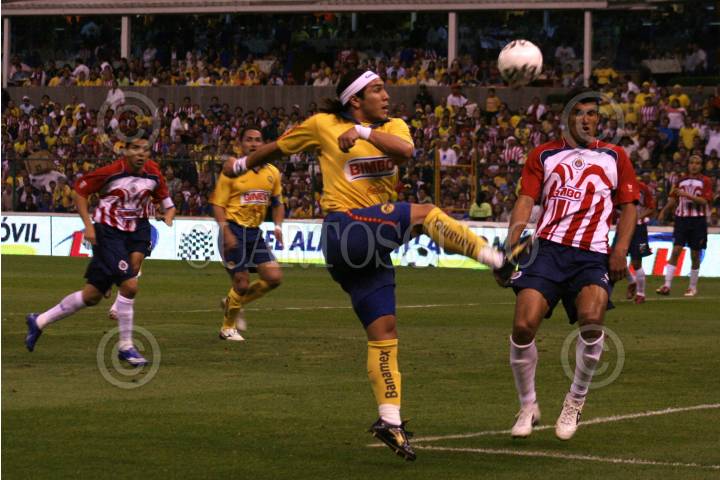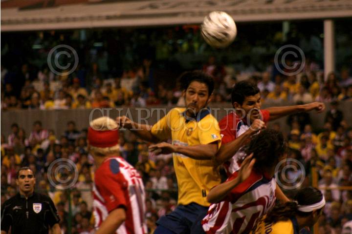 MÉXICO, D.F., 18MARZO2007.- Francisco Rodríguez "El Maza", cabecea un balón por aire, en el partido que las Águilas del América se impusieron por 1-0 a las Chivas de Guadalajara. FOTO: ISAAC ESQUIVEL/CUARTOSCURO.COM