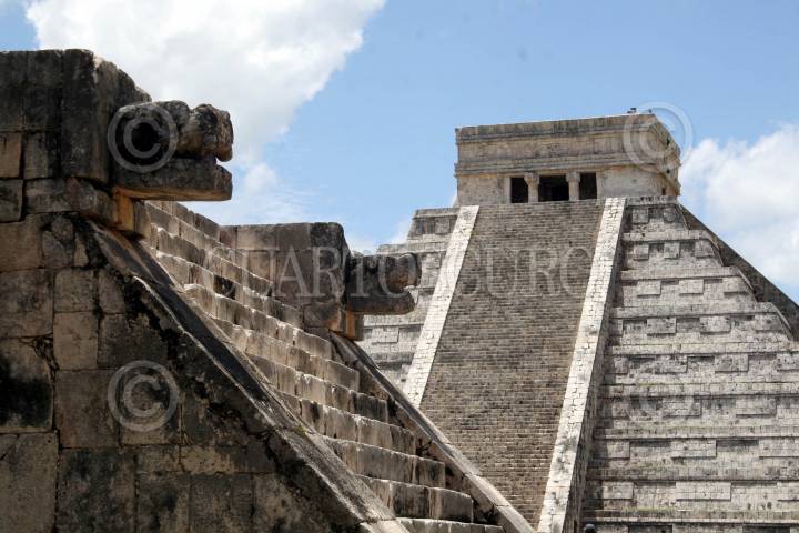 CHICÉN ITZÁ, YUCATÁN, 29AGOSTO2007.- La zona arqueológica más importante de la cultura Maya se ubica en la parte central norte de la Península, ahí fueron construidos alrededor de los años 435 y 455 la famosa pirámide de Kukulkan, el Cenote sagrado, el Observatorio, un campo de juego de pelota, el Templo de los guerreros y un cementerio. El nombre de Chichén-Itzá tiene raíz maya y significa "en la orilla del pozo de los itzáes". FOTO: MARCO POLO GUZMÁN HERNÁNDEZ/CUARTOSCURO.COM