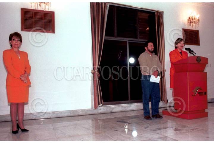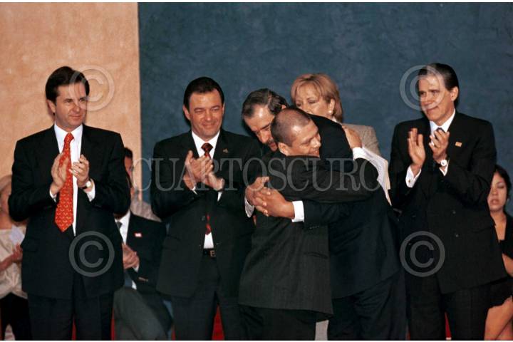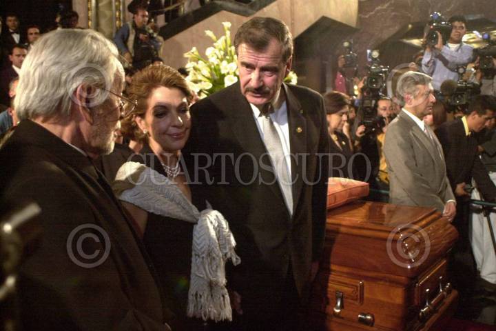 El presidente Vicente Fox, su esposa Marta Sahagún , el jefe de gobierno de DF, Andrés Manuel Lopéz Obrador, Santiago Creel, secretario de Gobernación, montarón una guardia en el feretro de " la Doña". FOTO: Oswaldo Ramírez/CUARTOSCURO.COM