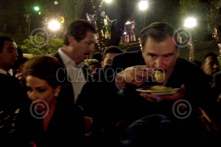 El primer mandatario aprovecha uno minutos para saborear uno tamales, durante la celebración de de la cuarta posada celebrada en los Pinos. FOTO: Oswaldo Ramírez/CUARTOSCURO.COM