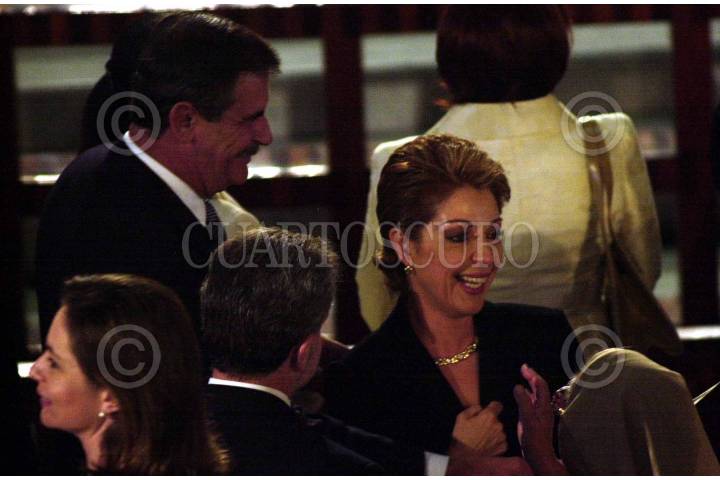 Vicente Fox y su esposa Martha Sahagún, llegan a la Basílica de Guadalupe donde esta mañana S.S. Juan Pablo II, canonizó al índio Juan Diego. FOTO: Pedro Mera/CUARTOSCURO.COM
