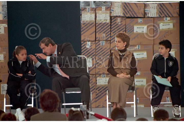 El presidente de México, Vicente Fox, durante la ceremonia de entrega de equipo de computadoras, en las escuelas de calidad, en la primaria "Matilde Acosta". Col. Plateros. FOTO: Eunice Adorno/CUARTOSCURO.COM