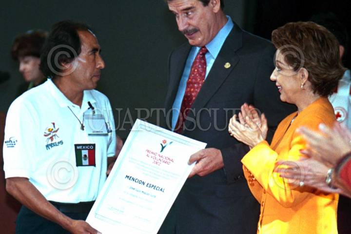 Melchor Ramírez recibio por parte del presidente de los Estados Unidos Mexicanos el reconocimiento al Voluntariado 2002 por su labor comop rescatista, en el salón Adolfo López Mateos de la Residecia Oficial de Los Pinos. FOTO: Susana Navarrete/CUARTOSCURO.COM