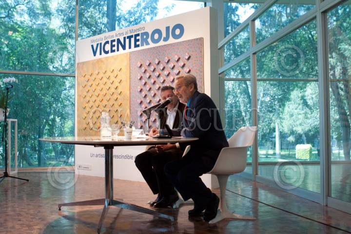 MÉXICO, D.F., 19NOVIEMBRE2011.- Consuelo Saizár, directora del Conaculta, le entregó la medalla Bellas Artes a el artista visual Vicente Rojo por su prolífica carrera e invaluables aportes a la vida cultural del país, en el Museo de Arte Moderno. FOTO: MOISÉS PABLO/CUARTOSCURO.COM