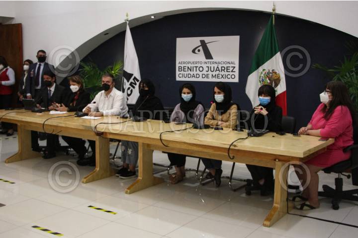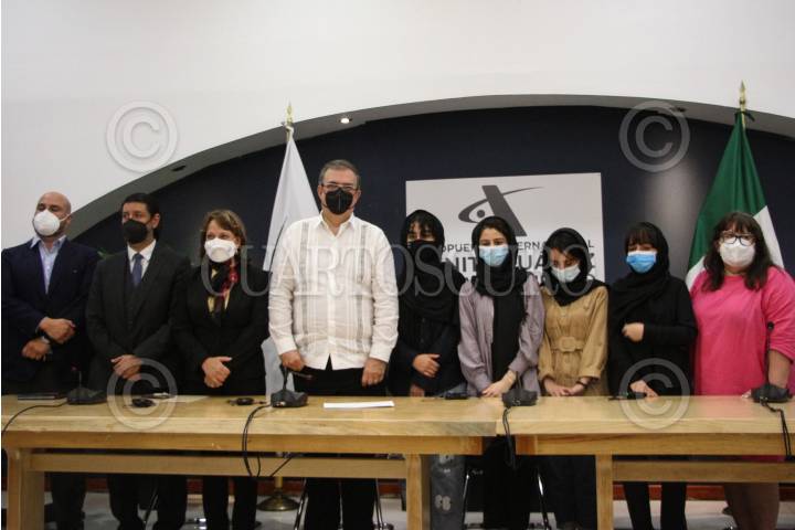 Marcelo Ebrard y Martha Delgado, recibieron a 5 jóvenes integrantes del equipo de robótica de Afganistán quienes llegaron a nuestro país, huyendo del régimen talibán.