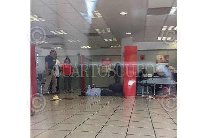 SALAMANCA, GUANAJUATO, 24JULIO2018.- Asalto en una sucursal bancaria Santader deja 1 muerto de nombre Jorge Villarreal Delgado, de 21 años de edad, y 3 lesionados con impactos de arma de fuego. FOTO: GUSTAVO BECERRA /CUARTOSCURO.COM