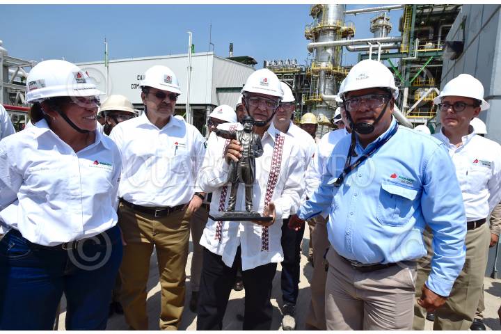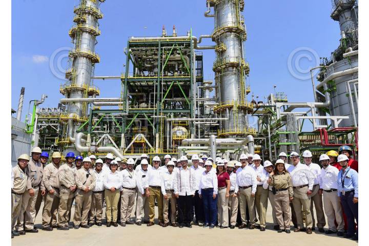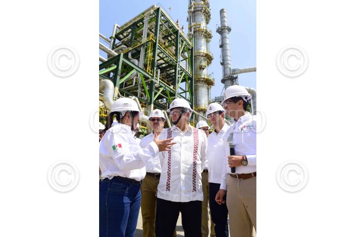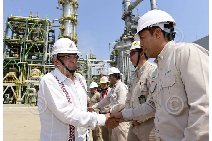SALAMANCA, GUANAJUATO, 26MAYO2019. Andrés Manuel López Obrador, Presidente de México, encabezó la presentación del Plan Nacional de Refinación en las instalaciones de la refinería ‘Ingeniero Antonio Manuel Amor Ríos’, en la cual realizó un recorrido por las instalaciones de la misma. Lo acompañan, la secretaría de energía, Rocío Nahle; el director de PEMEX, Octavio Oropeza y el gobernador de Guanajuato, Diego Sinhue Rodríguez Vallejo. FOTO: PRESIDENCIA /CUARTOSCURO.COM