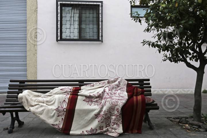 GUADALAJARA, JALISCO, 01FEBRERO2018.- Una persona en situación de calle duerme bajo un cobertor, ya que las temperaturas en los últimos días han descendido considerablemente, esto en el andador General Carlos Salazar contiguo al Instituto Cultural Cabañas. FOTO: FERNANDO CARRANZA GARCIA / CUARTOSCURO.COM