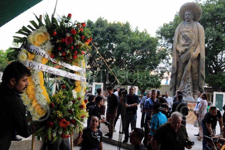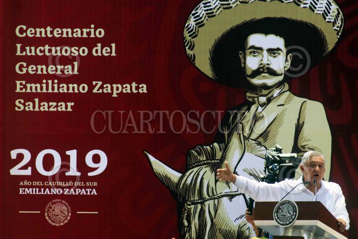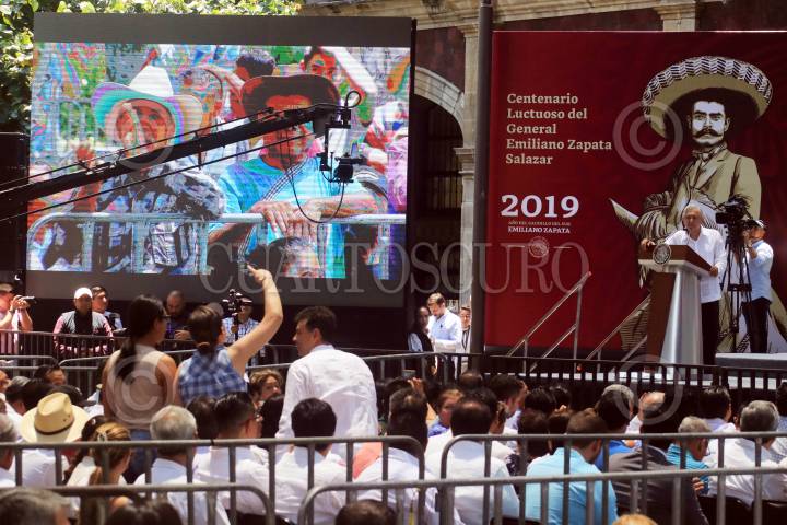 CUERNAVACA, MORELOS, 10ABRIL2019.- Andrés Manuel López Obrador, presidente de la Republica, acompañado del gobernador del estado, Cuauhtémoc Blanco Bravo, los gabinetes estatal y federal, así como diputados locales y federales, además de senadores conmemoro en esta ciudad el Centenario Luctuoso del General Emiliano Zapata Salazar. FOTO: MARGARITO PÉREZ RETANA /CUARTOSCURO.COM