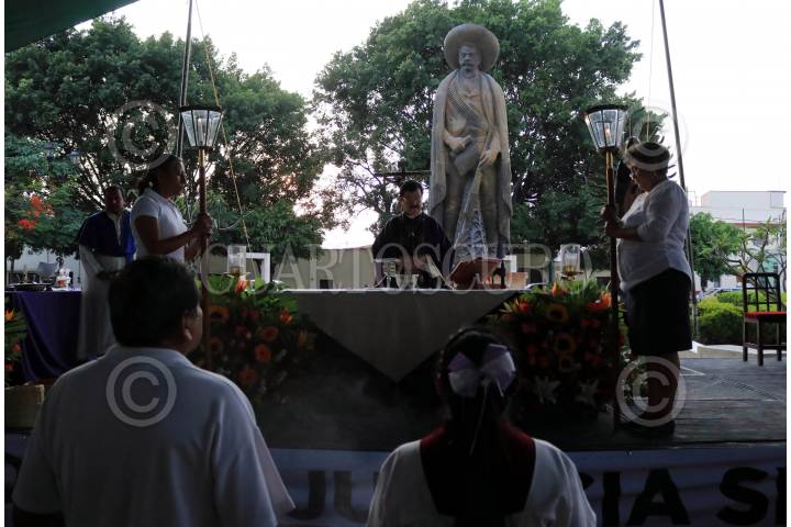 CUAUTLA, MORELOS, 09ABRIL2019.- Familiares del General Emiliano Zapata Salazar organizaron una misa y una velada en el sitio conocido como el Señor del Pueblo donde reposan los restos del revolucionario. Jorge Zapata, nieto del General reclamo al gobierno federal por el desdén en la organización de la conmemoración del centenario del magnicidio, que se conmemora mañana. FOTO: MARGARITO PÉREZ RETANA /CUARTOSCURO.COM