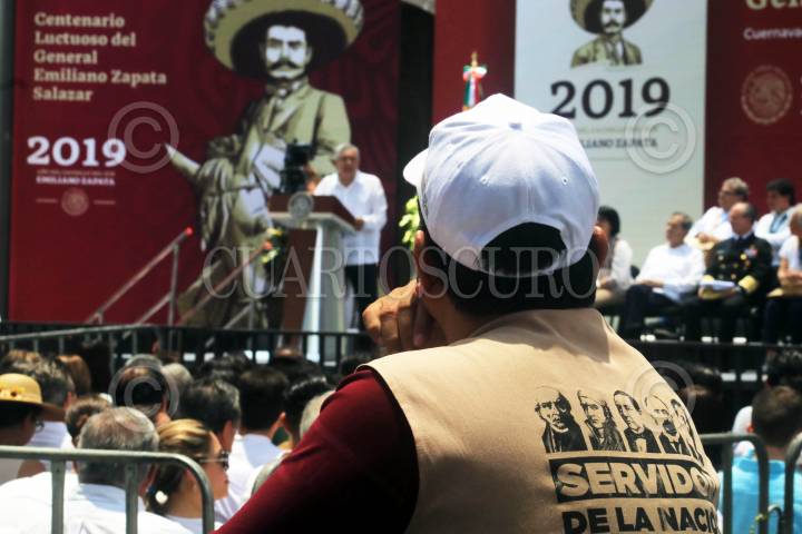 CUERNAVACA, MORELOS, 10ABRIL2019.- Andrés Manuel López Obrador, presidente de la Republica, acompañado del gobernador del estado, Cuauhtémoc Blanco Bravo, los gabinetes estatal y federal, así como diputados locales y federales, además de senadores conmemoro en esta ciudad el Centenario Luctuoso del General Emiliano Zapata Salazar. En la imagen un simpatizante escucha su mensaje. FOTO: MARGARITO PÉREZ RETANA /CUARTOSCURO.COM