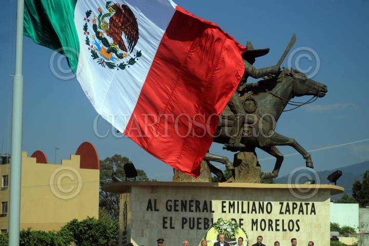 CUERNAVACA, MORELOS, 10ABRIL2019.- Cuauhtémoc Blanco Bravo, gobernador del estado, monto una guardia de honor en compañía de los integrantes de su gabinete en el monumento ecuestre que se encuentra en el Paso Exprés, al conmemorarse el centenario del asesinato del General Emiliano Zapata Salazar. FOTO: MARGARITO PÉREZ RETANA /CUARTOSCURO.COM