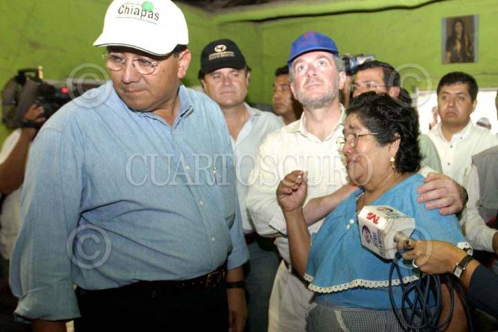 El gobernador de Chiapas Pablo Salazar y el comisionado para la Paz, Luis Hector Alvarez durante la liberación de 15 zapatistas del penal de cerro hueco en esta entidad. FOTO: Oscar León/CUARTOSCURO.COM