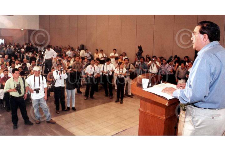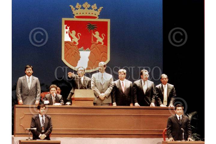 Pablo Salazar Mendiguchía rindio portesta ante el Congreso del Estado de Chiapas como gobernador, asistio Vicente Fox como invitado de honor. FOTO: Oscar León/CUARTOSCURO.COM
