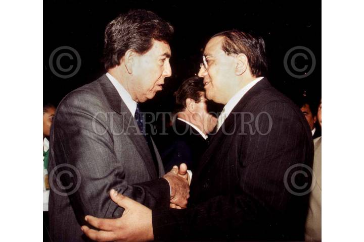 Cuauhtémoc Cárdenas felicita al gobernador de Chiapas Pablo Salazar Mendiguchía. FOTO: Oscar León/CUARTOSCURO.COM