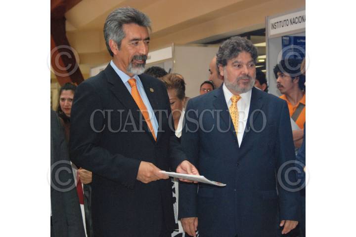 MÉXICO, D.F., 17AGOSTO2007.- Enrique Villanueva, Director General del IPN, y Arturo Salcido Beltrán, Director de Publicaciones del IPN, durante la inauguración de la Feria del Libro del Instituto Politecnico NAcional. FOTO: CLAUDIA ARÉCHIGA/CUARTOSCURO.COM
